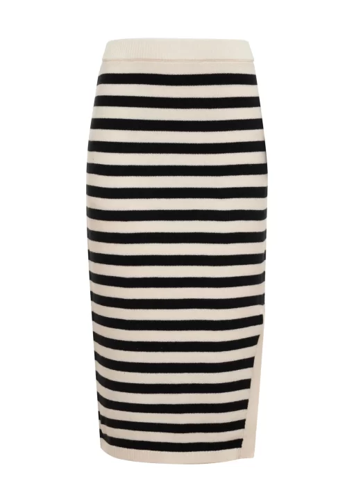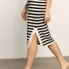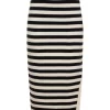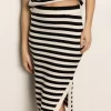 Sanctuary Clothing Women’s Side Slit Midi Skirt Black/ Macrame Stripe